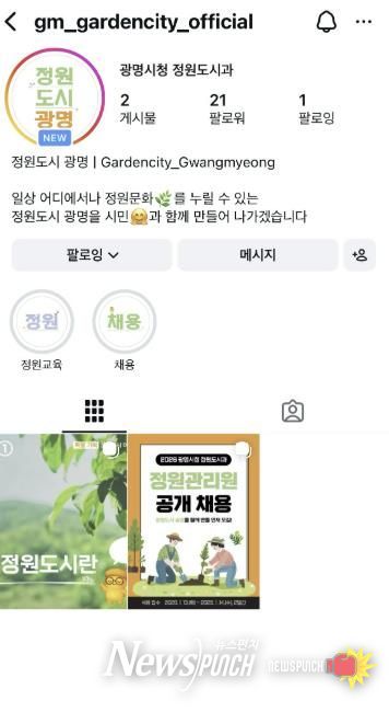 뉴스펀치 박상훈 기자 | 광명시가 ‘정원도시 광명’을 시민 일상에 더 가깝게 전하기 위해 공식 SNS(사회관계망서비스) 채널을 새롭게 개설했다.