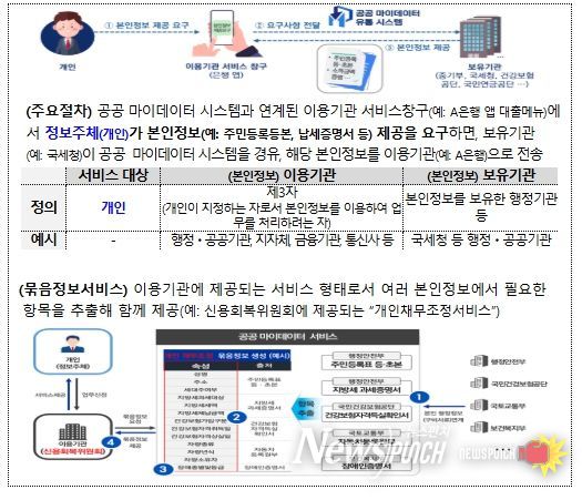공공 마이데이터 서비스는 정보주체인 국민 개개인의 요구에 따라 행정‧공공기관이 보유한 본인 행정정보를 본인 또는 제3자에게 온라인으로제공하는 서비스다.