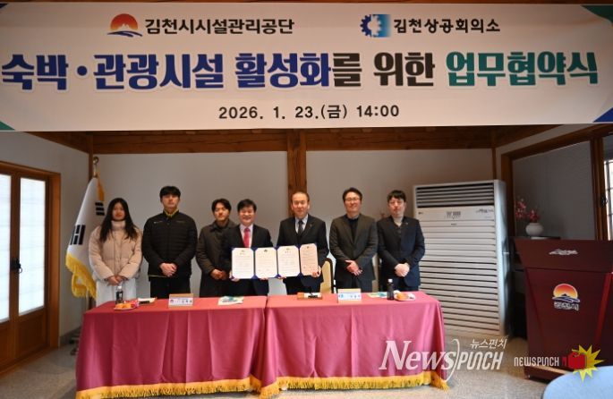 뉴스펀치 박세훈 기자 | 김천상공회의소(회장 안용우)는 김천시시설관리공단과 ‘회원사 서비스 강화를 위한 업무협약’을 체결했다.