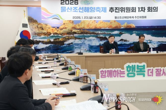 뉴스펀치 김윤걸 기자 | 울산조선해양축제 추진위원회(위원장 지종찬 동구문화원장)는 1월 23일 오후 2시 30분 동구청 2층 상황실에서 ‘2026 울산조선해양축제 추진위원회 1차 회의’를 개최했다.