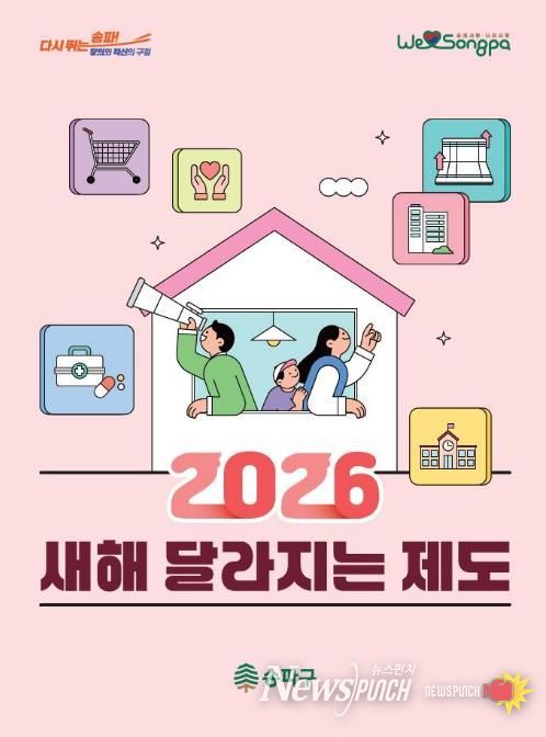 뉴스펀치 박상훈 기자 | 서울 송파구가 2026년을 맞아 구민 생활과 직결되는 각종 제도를 개선하고, 구민 삶의 질을 높이기 위한 ‘2026년 달라지는 제도’를 26일 발표했다.