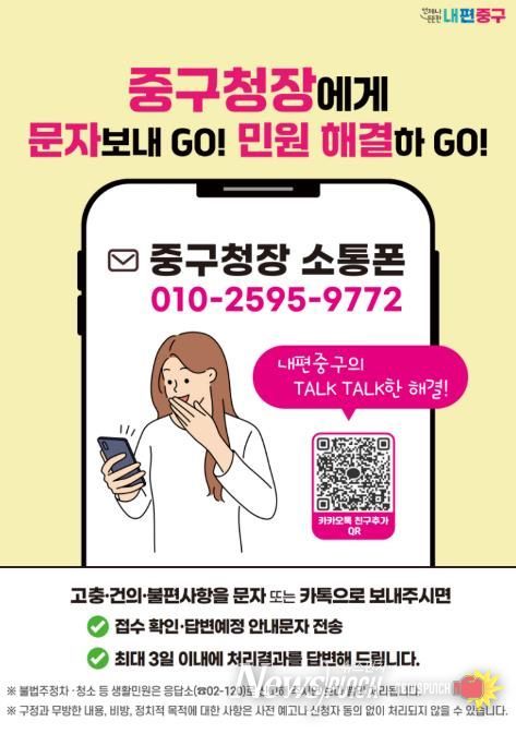 김길성 중구청장은 "구청장 소통폰은 주민 일상과 행정을 가장 빠르고 간편하게 잇는 연결선"이라며 "민원은 한 번 해결하면 끝이라는 안일함에서 벗어나 능동적인 소통으로 주민 일상을 언제나 챙기는 내편중구를 실현하겠다"고 말했다.