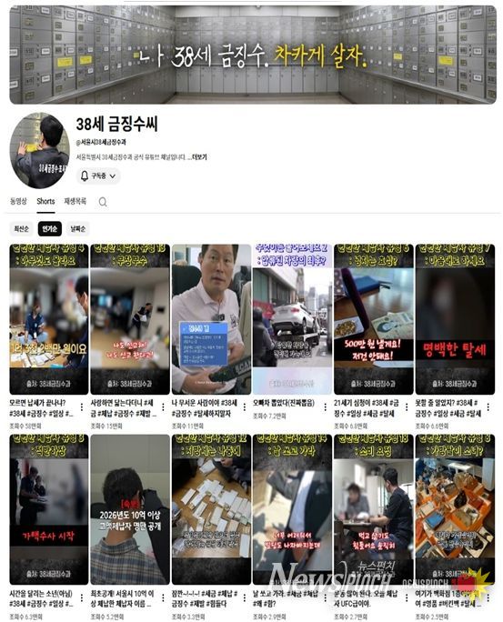 ‘38세 금징수씨’는 38세금징수과에서 근무하는 공무원의 시선으로 고액·상습 체납자에 대한 현장 징수 활동과 사무실 일상, 업무 추진 과정에서의 고민과 보람 등을 숏츠 또는 브이로그 형식으로 담아낸 유튜브 콘텐츠이다.
