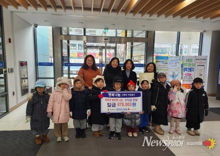 뉴스펀치 박상훈 기자 | 평택시 시립 지산하나어린이집은 지난 23일 ‘따뜻한 붕어빵 나눔’행사로 마련한 수익금 87만 8천 원을 지산동 행정복지센터에 전달했다.