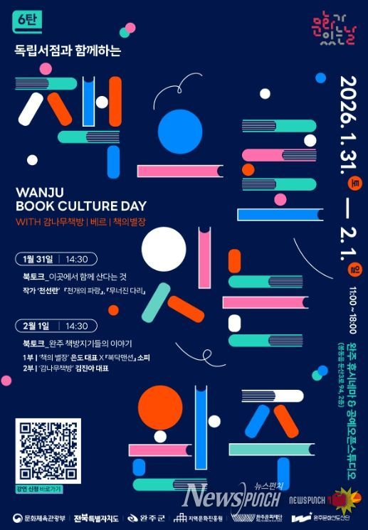 뉴스펀치 정홍균 기자 | 완주문화재단은 오는 1월 31일부터 2월 1일까지 이틀간 완주 휴시네마와 공예오픈스튜디오에서 '문화가 있는 날 6탄 – 책으로 잇는 완주'를 개최한다.