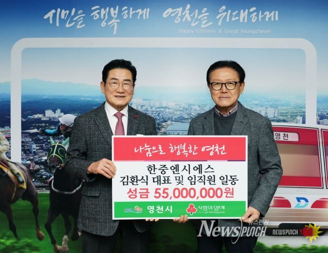 뉴스펀치 박세훈 기자 | 영천시는 지난 23일 ㈜한중엔시에스와 임직원 일동이 지역의 어려운 이웃을 돕기 위해 성금 5,500만원을 기탁했다고 밝혔다.