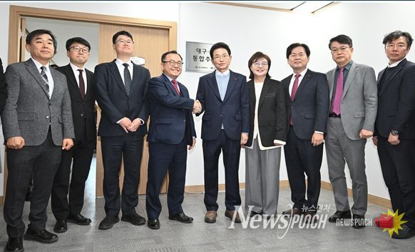 뉴스펀치 조평훈 기자 | 대구광역시와 경상북도는 1월 26일 경북도청에서 홍성주 대구시 경제부시장과 이철우 경북도지사가 참석한 가운데 ‘대구·경북통합추진단(T/F)’ 현판식을 개최하고, 성공적인 행정 통합을 위한 본격적인 실무 행보에 돌입했다.