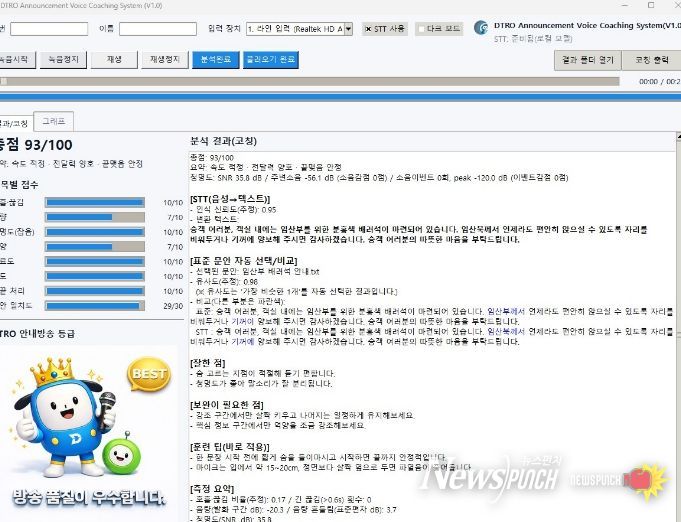 뉴스펀치 조평훈 기자 | 대구교통공사는 열차 이용객들의 정보전달 만족도를 높이고, 보다 신뢰받는 안내방송 서비스를 제공하기 위해 AI 기반의 ‘기관사 안내방송 분석·코칭 프로그램’을 자체 개발했다.