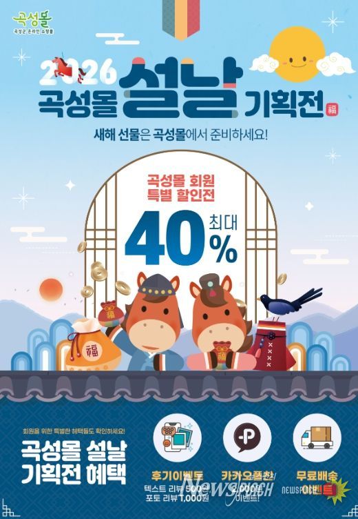 뉴스펀치 최영남 기자 | 전남 곡성군은 설 명절을 맞아 온라인 쇼핑몰 곡성몰에서 곡성몰 福(복) 가득 최대 40% 할인 특별전을 운영한다고 26일 밝혔다.