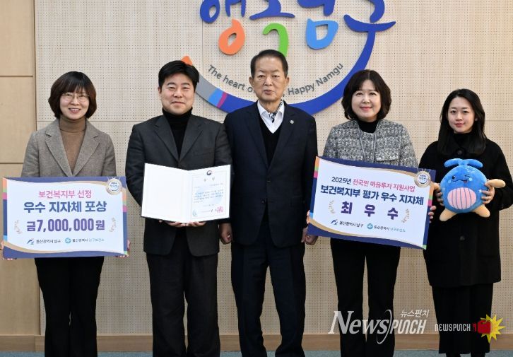 뉴스펀치 김윤걸 기자 | 울산 남구는 보건복지부 주관 ‘2025년 전국민 마음투자 지원사업’평가에서 최우수기관으로 선정돼 전년도에 이어 2년 연속 최우수지자체에 이름을 올렸다고 26일 밝혔다.