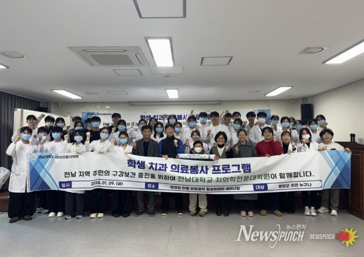 뉴스펀치 김용희 기자 | 전남대학교 치의학전문대학원은 2026년 1월 9일 전라남도 영암군 미암면 달코미마을에서 지역 주민을 대상으로 겨울 치과의료봉사활동을 실시했다.