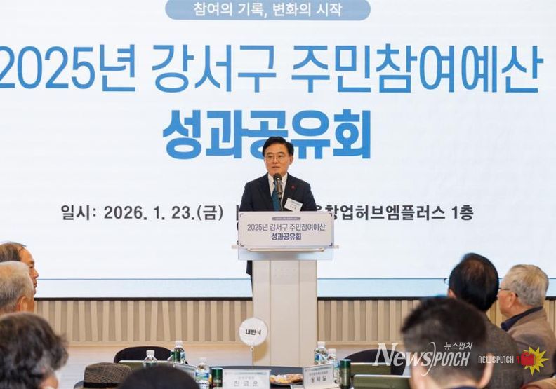 뉴스펀치 박상훈 기자 | 서울 강서구는 지난 23일 서울창업허브 엠플러스(마곡중앙8로 14)에서 주민참여예산위원회 및 각 동 주민자치회장 50여 명이 참석한 가운데 ‘2025년 강서구 주민참여예산 성과공유회’를 개최했다.