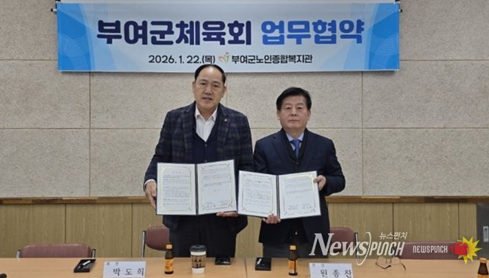뉴스펀치 이현승 기자 | 부여군노인종합복지관에서 어르신 생활체육 활성화와 건강 증진을 위한 업무협약(MOU)을 체결했다고 27일 밝혔다.