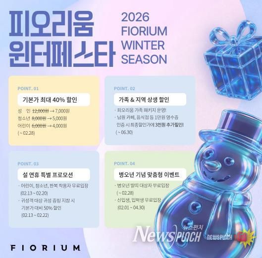 피오리움 관계자는 “새해와 설 명절을 맞아 시민과 관광객들이 부담 없이 문화예술을 누릴 수 있도록 윈터페스타를 비롯한 다양한 혜택을 마련했다”라며, “프로모션별 대상과 필수 지참 증빙서류가 상이하니 방문 전 공식 SNS 및 전화 문의를 통해 혜택을 놓치지 마시길 바란다”고 전했다.
