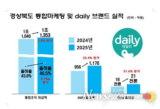 특히 경북 과수 통합브랜드 ‘daily(데일리)’는 전년 대비 22.4% 증가한 1,170억 원의 매출을 기록하며 브랜드 도입 이후 사상 최대 실적을 달성했다.