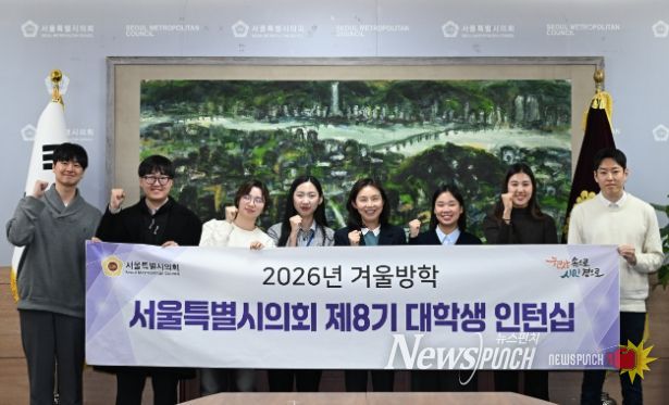 뉴스펀치 박상훈 기자 | 서울특별시의회 최호정 의장(국민의힘, 서초4)은 26일 의회 본관 의장접견실에서'제8기 겨울방학 대학생 인턴 간담회'를 개최하고, 청년들과 서울시 정책 현안, 일·가정 양립 고민 등을 주제로 진솔한 대화를 나눴다. 이번 간담회에는 대학생 인턴 7명이 참가했으며, 각자가 수행 중인 정책 연구 주제와 활동 소감을 공유했다.