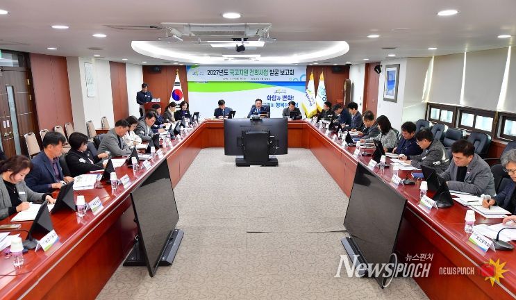 뉴스펀치 김용희 기자 | 장성군이 27일 군청 상황실에서 지역 현안의 신속한 해결을 위한 ‘2027년도 국고지원 건의사업 발굴보고회’를 가졌다.