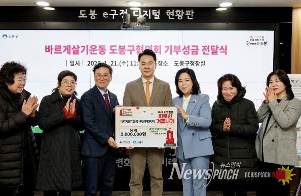 뉴스펀치 박상훈 기자 | 서울 도봉구는 지난 1월 21일 바르게살기운동 도봉구협의회 여성회로부터 성금 200만 원을 전달받았다.