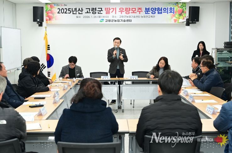 뉴스펀치 박세훈 기자 | 고령군은 1월 26일 농업기술센터 농업인교육관에서 ‘2025년산 고령군 딸기 우량모주 분양 협의회’를 개최했다. 이번 협의회는 2025년산 딸기 우량모주 공급 물량과 가격을 확정해 2026년 딸기 육묘 및 재배의 안정적 기반을 마련하기 위해 열렸다.