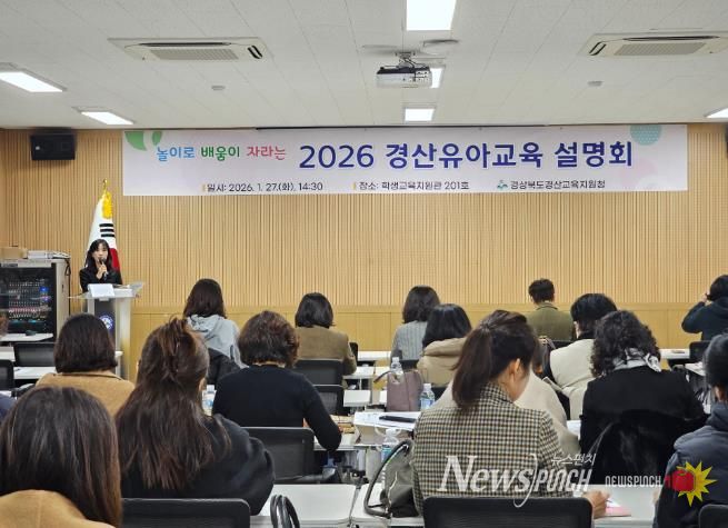 뉴스펀치 박세훈 기자 | 경산교육지원청은 1월 27일 관내 공·사립유치원 교원 50여명을 대상으로 놀이로 배움이 자라는 2026 경산유아교육 계획 설명회를 개최했다.