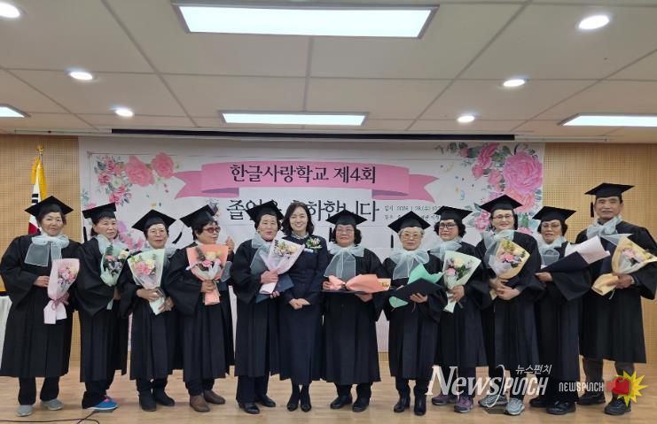 이날 남부도서관에서 열린 ‘제4회 글샘행복학교 졸업식’에서는 10명의 학습자가, 동부도서관에서 열린 ‘제4회 한글사랑학교 졸업식’에서는 11명의 학습자가 각각 초등학력 인정서와 졸업장을 받았다.