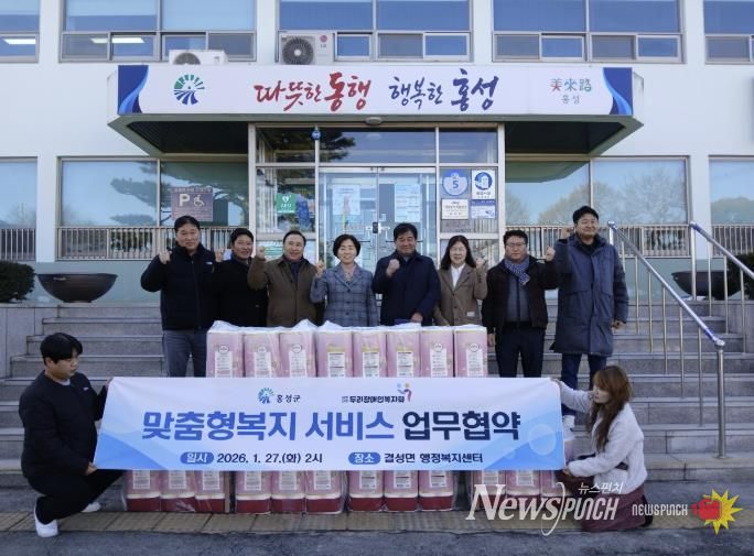 뉴스펀치 이현승 기자 | 홍성군은 지난 27일 (사)두리장애인복지회가 결성면행정복지센터와 취약계층 복지 지원 업무 협약식을 맺고 2026년 한 해 동안 결성면행정복지센터에 화장지 24롤 20개를 지속적으로 지원하기로 하며, 지역사회를 위한 나눔 활동에 동참했다고 밝혔다.