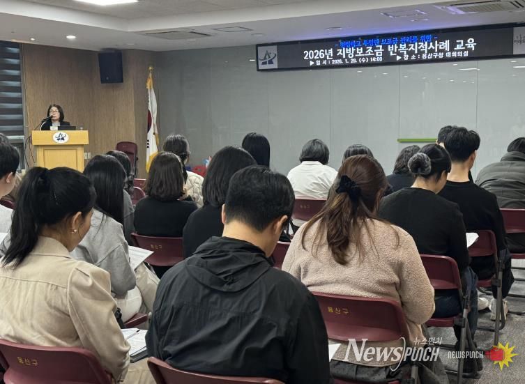 뉴스펀치 박상훈 기자 | 서울 용산구가 지난 28일 구청 대회의실에서 지방보조사업 업무 담당자 60여 명을 대상으로 ‘지방보조금 업무 역량강화 교육’을 실시했다.