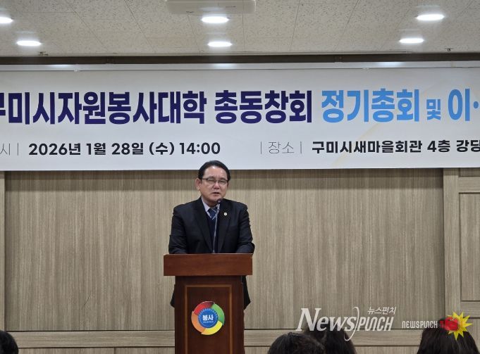 뉴스펀치 박세훈 기자 | 구미시는 구미시종합자원봉사센터 주관으로 지난 28일 구미시 새마을회 강당에서 ‘2026년 구미시 자원봉사대학 총동창회 정기총회 및 이·취임식’을 개최했다.