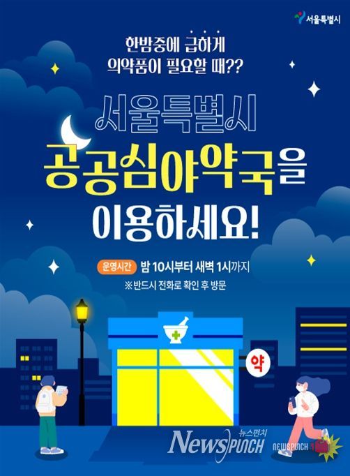 조영창 시민건강국장은 “공공심야약국은 늦은 밤에도 시민이 필요한 의약품을 구매하고 복약 상담을 받을 수 있도록 돕는 생활 밀착형 보건의료 서비스”라며, “심야 시간에도 시민들이 불편 없이 이용할 수 있도록 접근성과 안내를 꾸준히 강화해 나가겠다”라고 말했다.