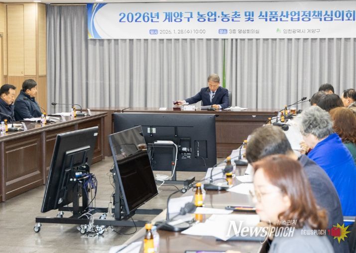 뉴스펀치 조평훈 기자 | 인천광역시 계양구는 농업의 지속 가능한 발전과 농업인의 소득 안정, 안전한 농식품 공급 기반 마련을 위해 1월 28일 구청 영상회의실에서 ‘2026년 농업・농촌 및 식품산업정책심의회’를 개최했다.