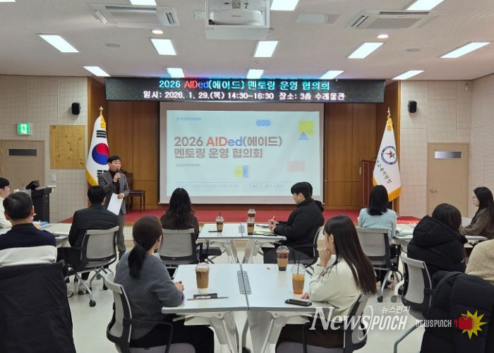 뉴스펀치 박상훈 기자 | 경기도연천교육지원청이 1월 29일 연천 발령 신규공무원의 원활한 공직 적응을 지원하기 위해 ‘2026 AIDed(에이드) 멘토링 운영 협의회’를 연천교육지원청 수레울관에서 진행했다.