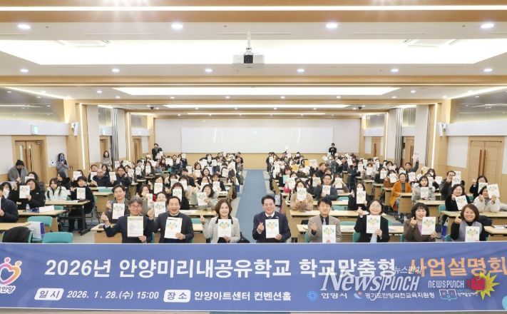 뉴스펀치 박상훈 기자 | 안양시는 안양과천교육지원청과 지난 28일 오후 3시 안양아트센터 컨벤션홀에서 ‘2026년 안양미리내공유학교 학교 맞춤형 사업 설명회’를 개최했다고 29일 밝혔다. 이날 양 기관은 ‘안양미리내공유학교 운영 및 지역교육협력 체계 구축을 위한 업무협약’도 함께 체결했다.
