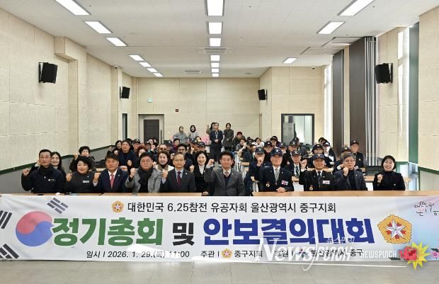뉴스펀치 김윤걸 기자 | 대한민국6.25참전유공자회 울산광역시 중구지회가 1월 29일 오전 11시 중구보훈복지회관 대강당에서 2026년 정기총회 및 안보 결의대회를 개최했다.