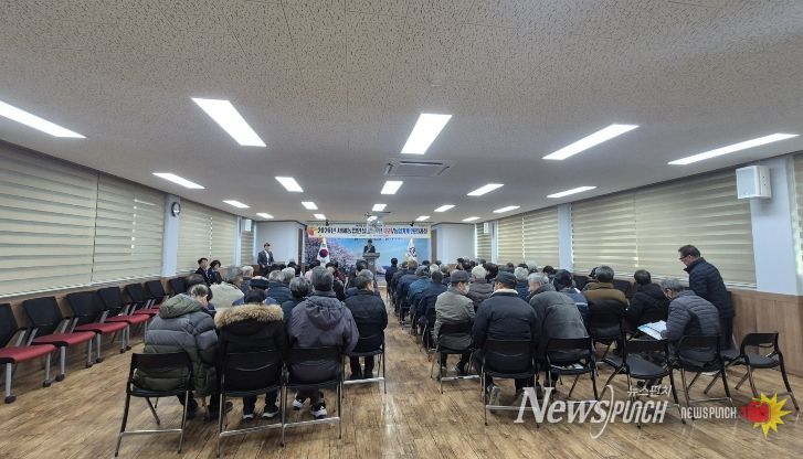 뉴스펀치 박세훈 기자 | 청도군은 1월 29일 각북면사무소 회의실에서 지역 내 사과 재배농가 100명을 대상으로 ‘2026년 새해농업인실용교육’의 일환으로 사과 재배 기술 교육을 실시했다.