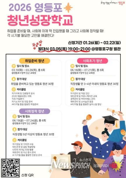 뉴스펀치 박상훈 기자 | 영등포구가 청년을 대상으로 삶의 단계별 역량 강화를 위해 ‘2026년 청년 성장학교’를 운영한다고 밝혔다.