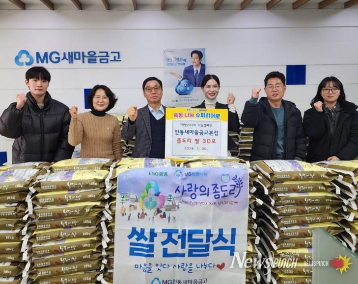 뉴스펀치 박세훈 기자 | 안동새마을금고는 1월 30일 ‘사랑의 좀도리 운동’을 통해 마련한 쌀을 관내 취약계층을 위해 기탁하며 지역사회 나눔을 실천했다.