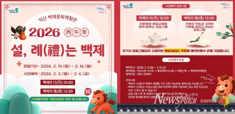 시 관계자는 "설 명절의 전통적 의미에 백제 문화를 접목한 이번 프로그램을 통해 방문객들이 역사와 문화를 더욱 가깝게 느끼고, 가족과 함께 즐거운 명절 추억을 만들 수 있기를 바란다"고 말했다.