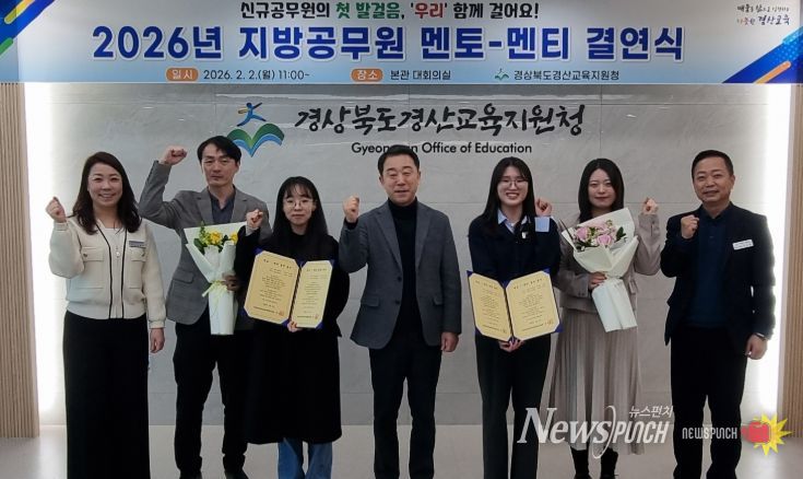 뉴스펀치 박세훈 기자 | 경산교육지원청 정수권 교육장은 2일 오전 11시부터 교육지원청 5층 대회의실에서 신규 공무원 2명과 선배공무원들이 참석한 가운데 지방공무원 후견인제(멘토-멘티) 결연식을 개최했다.