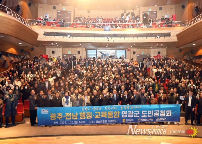 뉴스펀치 김용희 기자 | 지방행정의 패러다임 전환을 위한 광주·전남 행정통합 논의가 급물살을 타고 있다. 행정구역을 넘어 기능과 권한을 재편하고, 국가 경쟁력을 높이기 위한 통합행정에 대한 기대가 커지고 있다. 이러한 흐름 속에서 영광군은 통합을 수동적으로 받아들이는 데 그치지 않고, 국가 기조에 공감하며 선제적 대응에 나서 주목받고 있다.