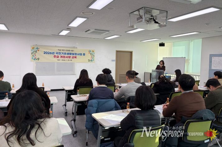 뉴스펀치 김윤걸 기자 | 부산 사하구는 최근 개정된 복지 분야 주요 지침을 현장에 신속하고 정확하게 적용하기 위해, 지난 1월 29일 사하구청 제2청사에서 사회복지 담당자를 대상으로 '2026년 복지분야 등 주요 개정 사항'에 대한 직원 교육을 실시했다.