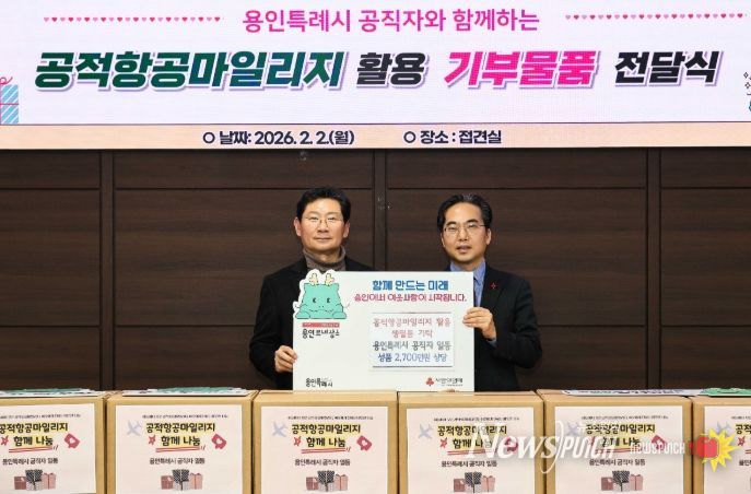 뉴스펀치 박상훈 기자 | 용인특례시는 2일 시청 접견실에서 ‘공적 항공마일리지 함께 나눔’ 기탁식을 열어 공직자들이 국외출장 과정에서 적립한 공적 항공마일리지를 활용한 기부 물품을 경기사회복지공동동모금회에 전달했다고 밝혔다.