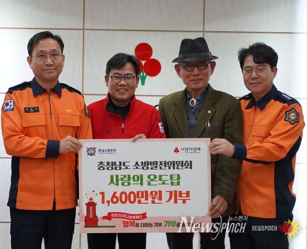 뉴스펀치 이현승 기자 | 충청남도 소방발전위원회(소방정책 자문·협의기구)는 지난 30일 연말연시 이웃돕기 성금 모금인 ‘사랑의 온도탑’에 성금 1600만 원을 기탁했다고 1일 밝혔다.