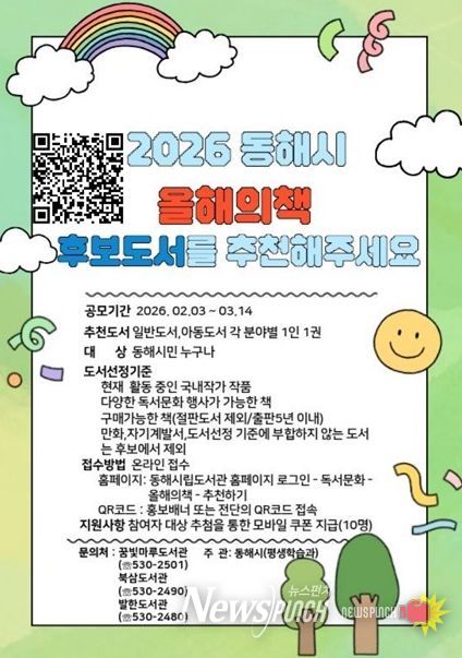 뉴스펀치 조평훈 기자 | 동해시는 시민과 함께 책을 읽는 문화 확산을 위해 ‘책 읽는 도시 동해시, 2026 올해의 책’ 선정에 나선다.