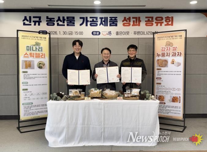 뉴스펀치 박상훈 기자 | 시흥시 농업기술센터는 지난 1월 30일 센터 내에서 지역 농산물을 활용한 ‘신규 농가공제품 개발 성과공유회 및 기술이전 업무협약식’을 열었다.