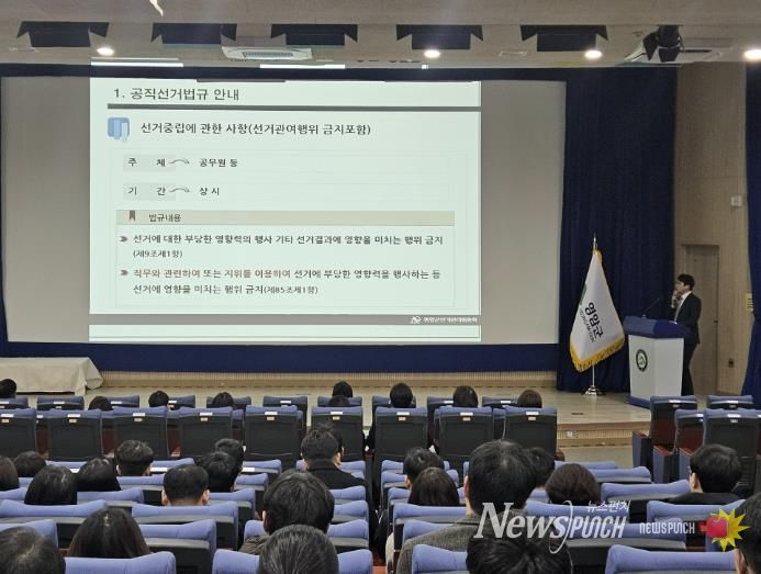 이날 교육은 6/3일로 다가온 지방선거에서 공직자의 정치적 중립 의무를 강화하고, 선거 관련 법령 이해도를 높이기 위해 마련됐다.