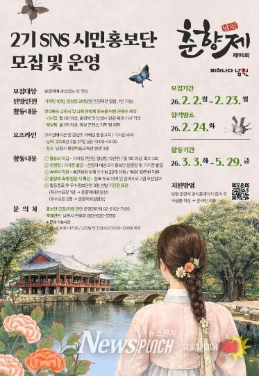 뉴스펀치 정홍균 기자 | 남원시는 남원시와 춘향제의 다채로운 매력을 생생하게 전할 ‘SNS 시민홍보단’을 모집한다.