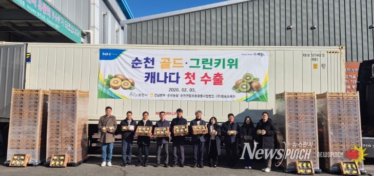 뉴스펀치 최영남 기자 | 순천시는 3일 순천거점산지유통센터에서 ‘2026년 순천 참다래 캐나다 첫 수출 기념 상차식’을 개최했다고 밝혔다.