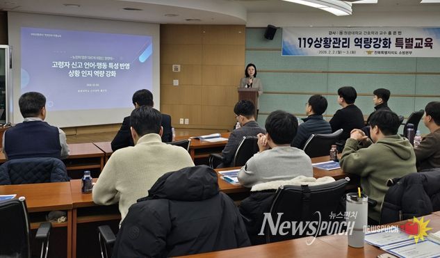 뉴스펀치 최영남 기자 | 전북특별자치도소방본부는 2일부터 3일까지 이틀간, 119종합상황실 근무자의 상황접수 역량 강화를 위해 신고약자를 대상으로 한 맞춤형 특별교육을 실시했다고 밝혔다.