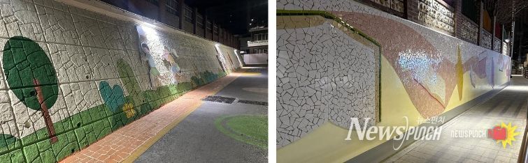 부산진구는 초읍초등학교 옹벽 구간에 디자인 조형물과 벽화 도색, LED 조명을 설치해 주변 환경을 정비했다. 해당 구간은 그동안 야간 조도가 낮아 보행 안전에 대한 우려가 제기돼 왔으나, 이번 옹벽 개선사업을 통해 밤길 보행환경이 한층 밝고 안전하게 개선됐다.
