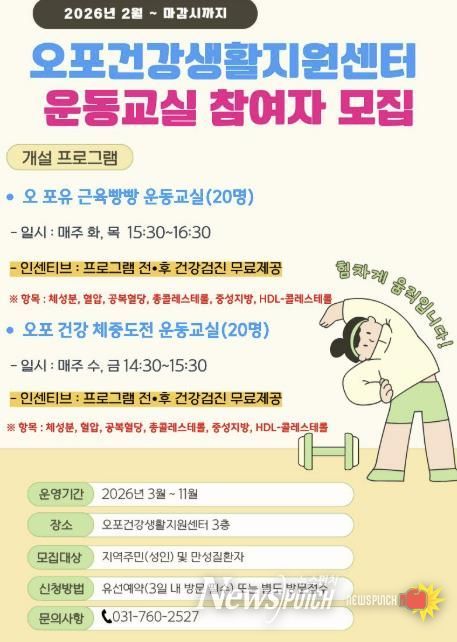 조정호 보건소장은 “규칙적인 운동은 만성질환 예방은 물론 일상 속 스트레스 해소에도 도움이 된다”며 “전문적인 관리 아래 건강한 생활 습관을 만들고자 하는 시민들의 적극적인 참여를 바란다”고 말했다.